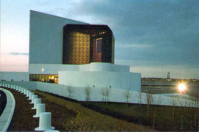 No. 1319 Postcard. Postally unused. On verso: A twilight view of the John F. Kennedy LIbrary, located on Dorchester Bay. The building, designed by I.M. Pei, houses archives and museum. Photo: Nathaniel Lieberman. The Presidential Museum at the John F. Kennedy Library, Columbia Point on Dorchester Bay, Boston, Massachusetts 02125. Plastichrome, Boston, MA.