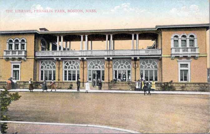 Library, Franklin Park Postcards Library, Franklin Park No. 343 Postcard. Caption on front: The Library, Franklin, Park, Boston, Mass. Postally unused. On verso: No. 1062. Made in Germany, Reichner Bros. Boston, Munchen, Leipzig. Facebook Twitter Print Friendly Skills Dorchester, Franklin Park, Library Posted on November 19, 2022 ← Edward Everett Square Tower, Franklin Park →
